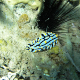 Around noon, we saw that Nadine, Bruce, and Tristen of Pioneer were in the channel between Nosy Sakatia and Nosy Be just south of the Sakatia Towers anchoring area snorkeling. Yesterday when we returned from our way too shallow snorkel we noticed for the first time that the shallow area just south of us is full of coral. Previously we thought it was just a shallow sand bank. Mark got in the dinghy and went down to find out what Nadine and Bruce were seeing underwater, and he immediately returned and told me to get my suit on. In two minutes we were in the dinghy and two minutes later we were in the water. What a delightful surprise. This shallow area is full of various types of coral, sea fans, sponges, and small fish that are way bigger than we have ever seen. Bluegreen chromis which are usually no more than two inches long are more than double that here. These normally benign little fish were all of a sudden absolutely beautiful when mixed with bright orange and raspberry pink Anthias. The last time we saw Anthias was in Vanuatu, but here they are bigger, more numerous, and just beautiful. All of this was mixed with giant pink fan corals, white star fish with bright, bright red trimmings, the biggest clams we have ever seen, and a few fish varieties that just aren’t in the identification books. Conditions today were just perfect. We’ll give it another try tomorrow as there are just so many things to see. And we finally saw a nudibranch. Yeah! And Nadine saw a lionfish that was as big as a bushel basket. We’ll definitely look for that tomorrow. I don’t know what makes the fish so big here, but we do feel like we are in the land of giants.