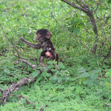 This day was all about seeing a mother cheetah with her three babies early in the morning, stumbling upon a pride of ten sleeping lions right beside the road, and seeing a baby hippo, as well as the big mommas and papas, at the end of the day. The adrenaline was running high, but the leopard still escaped us. We left Crocodile Bridge Camp at first light at 4:30 in the morning and by 8:30 am we had seen a herd of 20-30 elephants, three different kinds of antelope, two different groupings of dwarf mongoose, with the highlight being a beautiful mother cheetah crossing the road right in front of the car and then seeing her three bouncing little cubs coming behind her. They ran and climbed and put on a delightful show for us while the mother quietly disappeared into the bush. They quickly followed, but not before we were able to get great photos of the babies. Our goal for the day was to drive to the main road which bisects the park from north to south and then head south and west before heading back to the east to Skukuza Camp for the night. When we reached the main road and headed south, we literally stumbled upon a pride of lions. We saw a couple of cars stopped on our side of the road, so we pulled over to have a look. We were searching through the brush to see what we could see when we realized that lions were sleeping not even twelve feet away from us. If the other cars had not been stopped, we are not sure we would have seen them. They were just TOO obvious. There was a young male lion and a group of females in one body pile, three more in another body pile, and the dominant male sleeping a few yards away from the others. At first it looked like they were all dead. There was absolutely no movement. But then one would twitch, another would toss her head, and yet another would sit up for a second and then just absolutely and instantly collapse. It was so exciting to see these magnificent creatures up-close, but after a half an hour we saw that they were out for the count and we traveled on. After checking into our guest house for four at Skukuza Camp later in the day, we headed to a close-by hide looking out over Lake Panic. Here we saw hippos at a distance but one mother and baby very close to the hide. We also saw a mother egret trying to protect her baby from a monitor lizard (quite an interesting show) and many birds. At day’s end we returned to Skukuza and enjoyed the very nice accommodations in the guest house with Ed and Lynne.